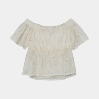 kr. 800,00This floaty, off-the-shoulder top features a Broderie Anglaise overlay. Pair with wide-leg trousers for a playful look.