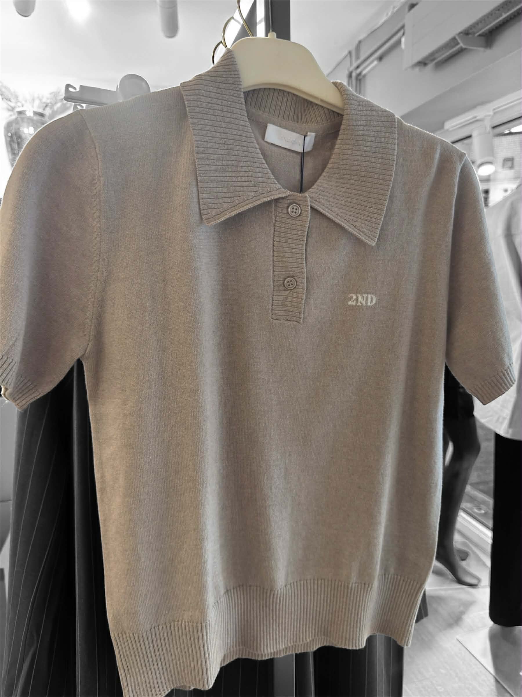 This soft-knit, polo-style top features a collar, buttons at the neck, and a logo on the chest. Regular fit