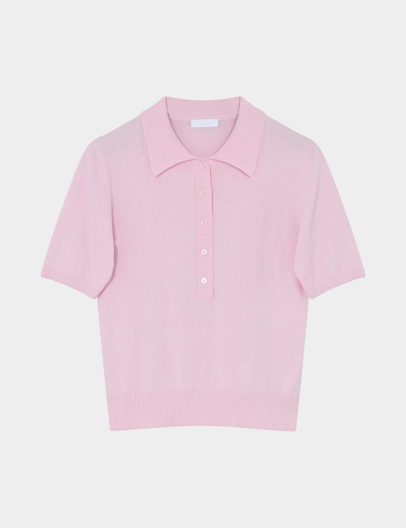 This soft, knitted polo shirt features short sleeves and ribbing at the collar, arms, and hem.