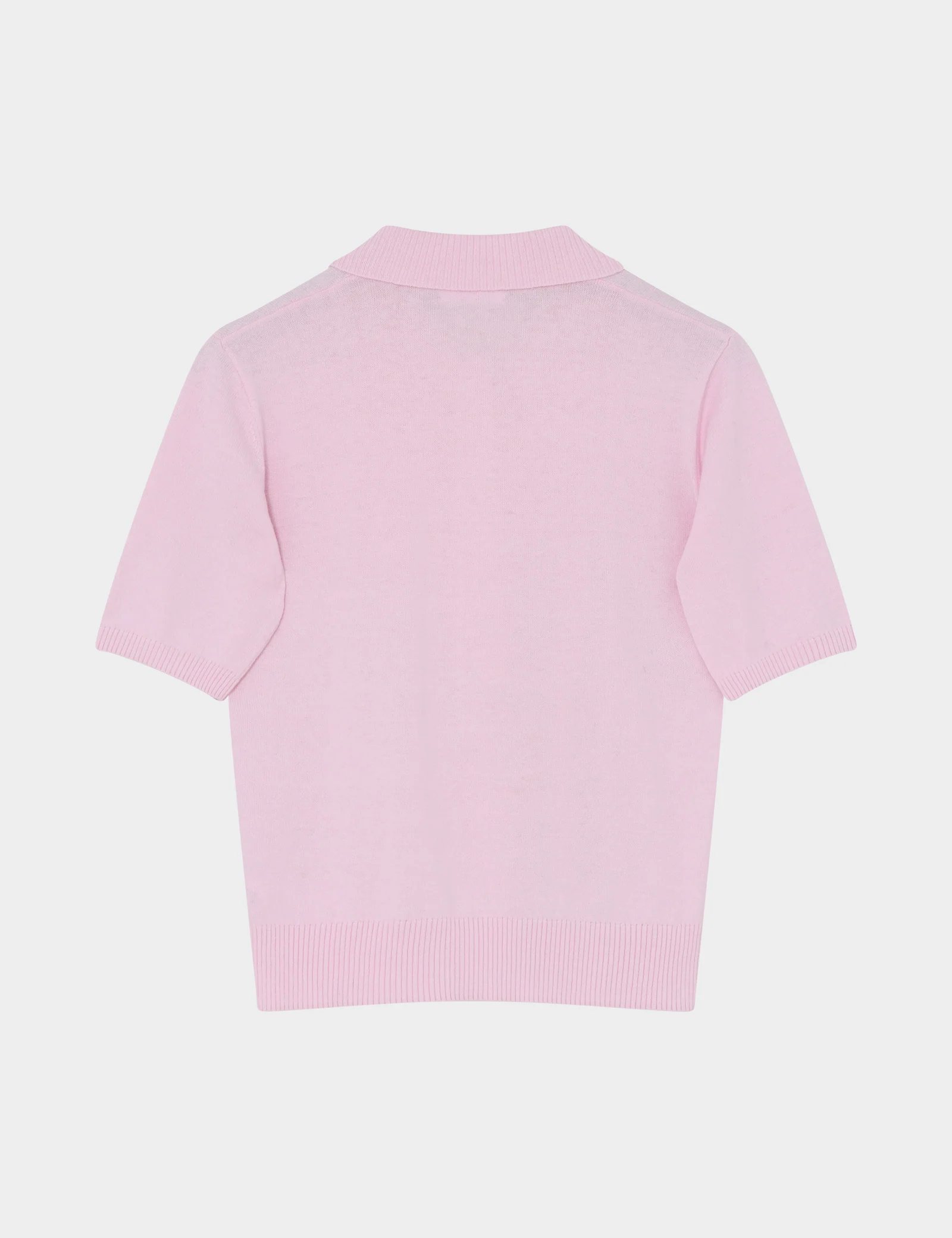 This soft, knitted polo shirt features short sleeves and ribbing at the collar, arms, and hem.