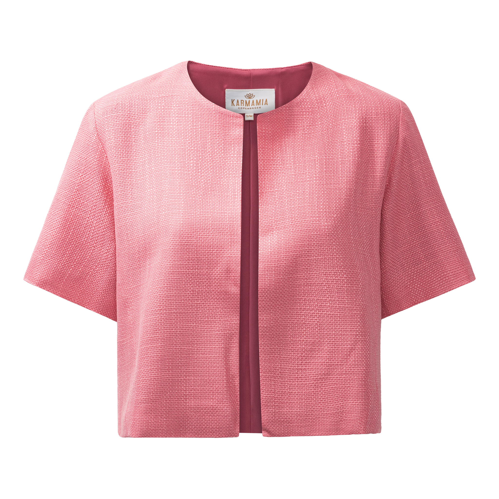 Cropped short sleeved jacket in a wool blend with satin lining.