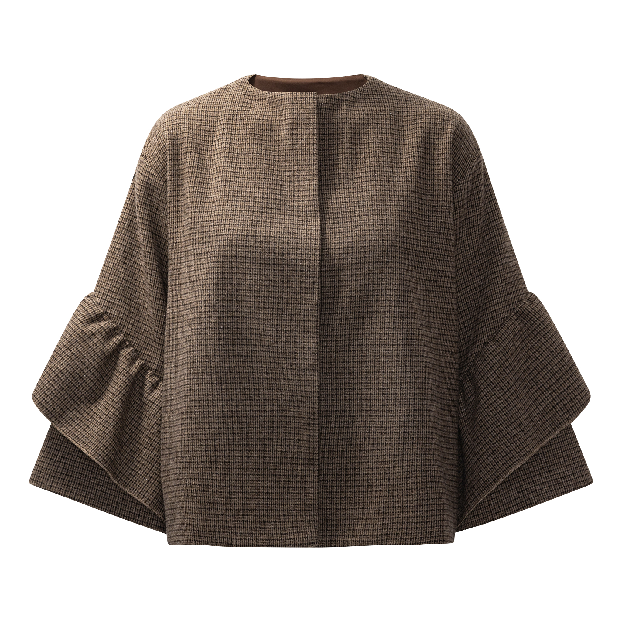 The Spencer Jacket is a short version of our classic, limited edition Kennedy Jacket. The buttons at the neckline enables you to reveal your favourite blouse underneath or fasten and wear the jacket as a loose top. Peplum sleeves with tiered ruffles flatter the arm and add an extra hint of fashion to the Spencer Jacket.