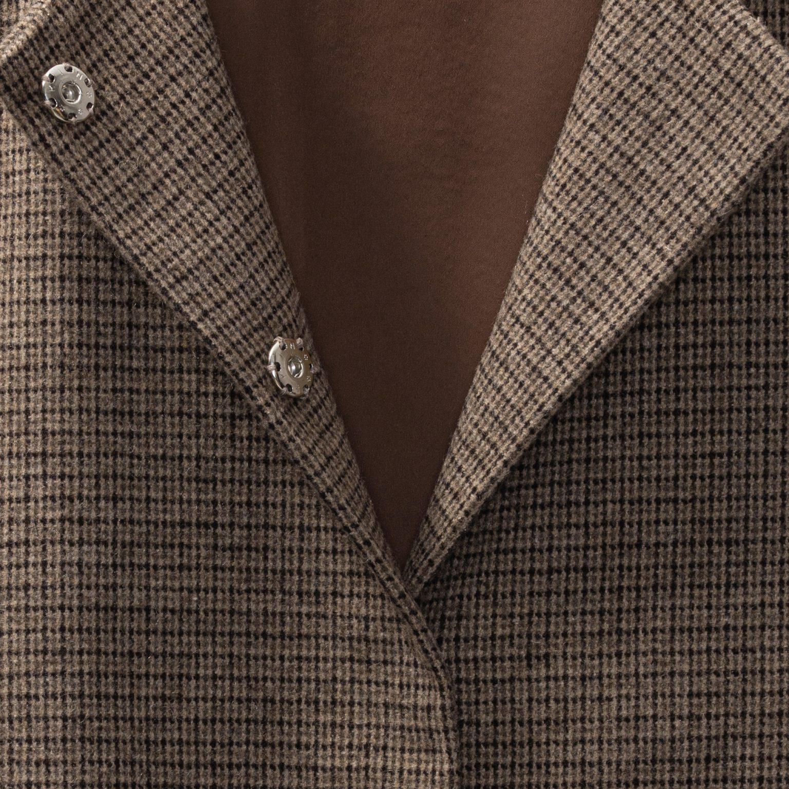The Spencer Jacket is a limited edition with only a few pieces available in different combinations of patterned or solid colour inner layer and woolen outer layer. The inner layer is made of soft and comfortable satin, while the outer layer is made of wool to keep you warm throughout the cold days.