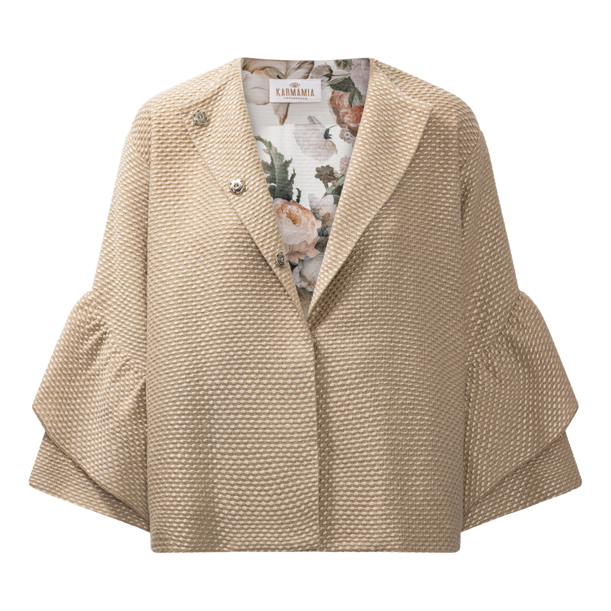 The Spencer Jacket is a short version of our classic, limited edition Kennedy Jacket. The buttons at the neckline enables you to reveal your favourite blouse underneath or fasten and wear the jacket as a loose top. Peplum sleeves with tiered ruffles flatter the arm and add an extra hint of fashion to the Spencer Jacket.