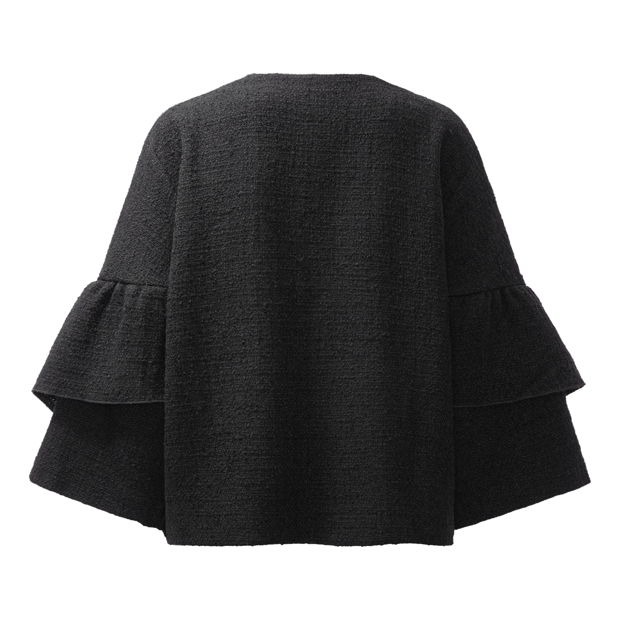 The Spencer Jacket is a short version of our classic, limited edition Kennedy Jacket. The buttons at the neckline enables you to reveal your favourite blouse underneath or fasten and wear the jacket as a loose top. Peplum sleeves with tiered ruffles flatter the arm and add an extra hint of fashion to the Spencer Jacket.