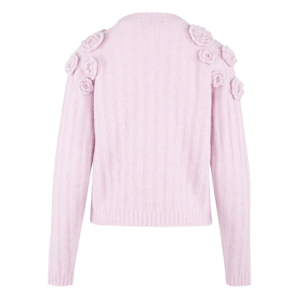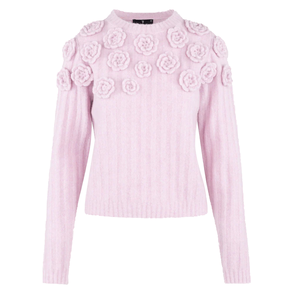 Denne stilfulde sweater har en iøjnefaldende blomsterapplikation, der tilføjer et strejf af blomsterelegance til din garderobe